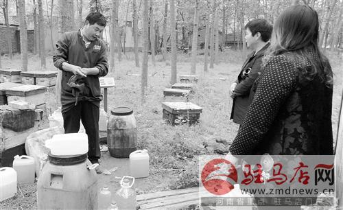 日前,新蔡縣楊莊戶鄉(xiāng)楊莊戶村養(yǎng)蜂專業(yè)戶賈海亮和妻子楊小嬌采收蜂蜜?,F(xiàn)在人們的生活水平提高了,注重養(yǎng)生保健,蜂蜜常常是現(xiàn)采現(xiàn)售。圖為當(dāng)?shù)厝罕娗皝碣徺I剛剛采收下來的蜂蜜和蜂王漿。 通訊員 梅 勇 攝