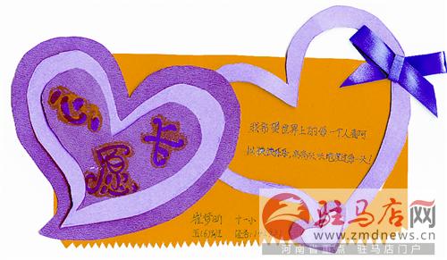 摘要: 小小心愿卡 我希望世界上的每一個(gè)人都可以快快樂樂,高高興興地度過每一天。市第十一小學(xué)五(6)班 崔夢(mèng)昕(小記者證號(hào):142931) 愿我每天開開心心,每次都能考個(gè)好成績(jī);爸爸媽媽身體健康;哥哥在德國(guó)平平