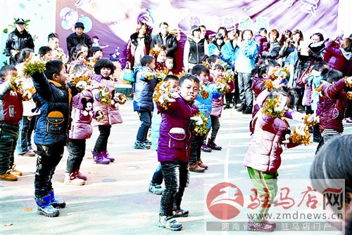 2013年12月28日,駿馬路愛(ài)心幼兒園的小朋友在表演節(jié)目。2013年12月26日~31日,愛(ài)心幼兒園各分園紛紛舉辦文藝活動(dòng),迎接2014年元旦。(張 龍)