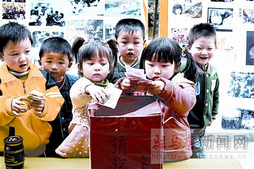 雅安的地震,牽動(dòng)著市政府機(jī)關(guān)幼兒園每一位師生的心。老師們利用展板和播放一些新聞片段向小朋友介紹雅安地震的情況,在老師的啟發(fā)引導(dǎo)下,使孩子懂得在別人困難的時(shí)候要用自己的愛心給予幫助?,F(xiàn)場共收到5.3萬元捐款?! ?/span>(李鵬飛 黃 軍)