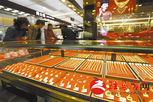 五一期間,記者走訪發(fā)現(xiàn),我市各家商場黃金專柜都提早亮出了黃金飾品降價促銷底牌刺激消費(fèi),激發(fā)了市民的消費(fèi)熱情,黃金飾品受追捧。圖為在某商場黃金專柜前,工作人員向消費(fèi)者展示黃金飾品。 記者 吳 波 攝