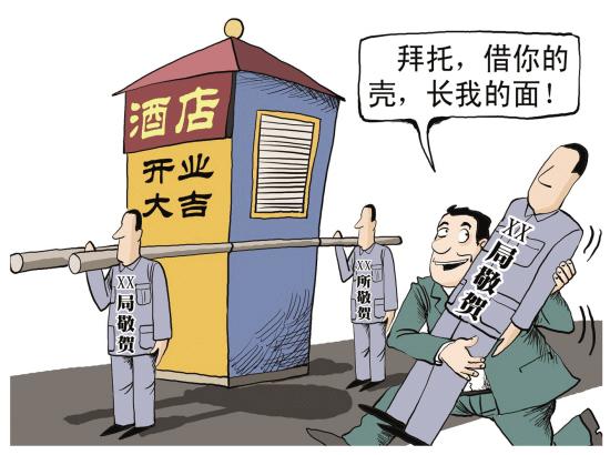 摘要: □建 輝 近日,四川省郫縣紅光鎮(zhèn)廣場(chǎng)路一家中餐店開(kāi)業(yè)。為表示慶賀,朋友們紛紛送去花籃和條幅。慶賀條幅中竟有不少署名當(dāng)?shù)卣块T(mén)。這件事在當(dāng)?shù)匾鸩恍〉?ldquo;轟動(dòng)”。對(duì)于這些署名政府部門(mén)的條