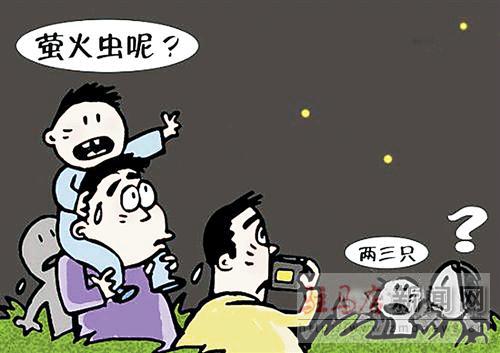人類啊,為了自己的喜好欲望,擾亂了多少大自然生靈的夢境!許多地方天然的綠沒了、景沒了,便花巨資千里迢迢移栽,野生動物瀕臨滅絕了,又寶貝般圈養(yǎng)在園中。古人夜讀,可“聚螢做囊”,如今,連鄉(xiāng)下也難覓螢火蟲的蹤跡了……小小螢火蟲,莫非在與人們賭氣,才不肯為游人亮燈?