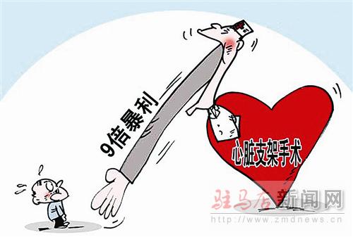 一個小感冒花上百元,許多老百姓對此已見怪不怪,但是安裝一個心臟支架,患者要支付比出廠價格高數(shù)倍甚至十幾倍的錢。全國政協(xié)委員董協(xié)良在提案里揭露了醫(yī)療器械市場存在的黑幕:“一個國產(chǎn)的心臟支架,出廠價不過3000元,到了醫(yī)院便成了2.7萬元;一個進(jìn)口的心臟支架不過6000元,到了醫(yī)院便成了3.8萬元。”董協(xié)良說,心臟支架暴利已經(jīng)超過了販毒。(據(jù)《中國青年報(bào)》)
