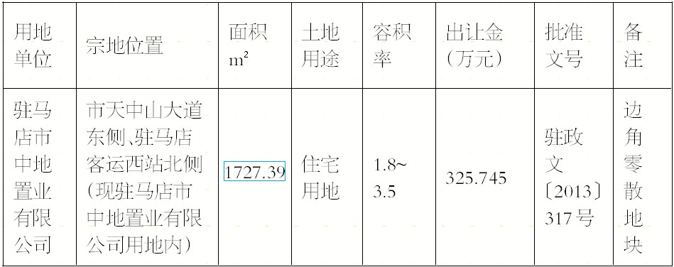 駐馬店市國土資源局國有建設用地使用權出讓結果公告