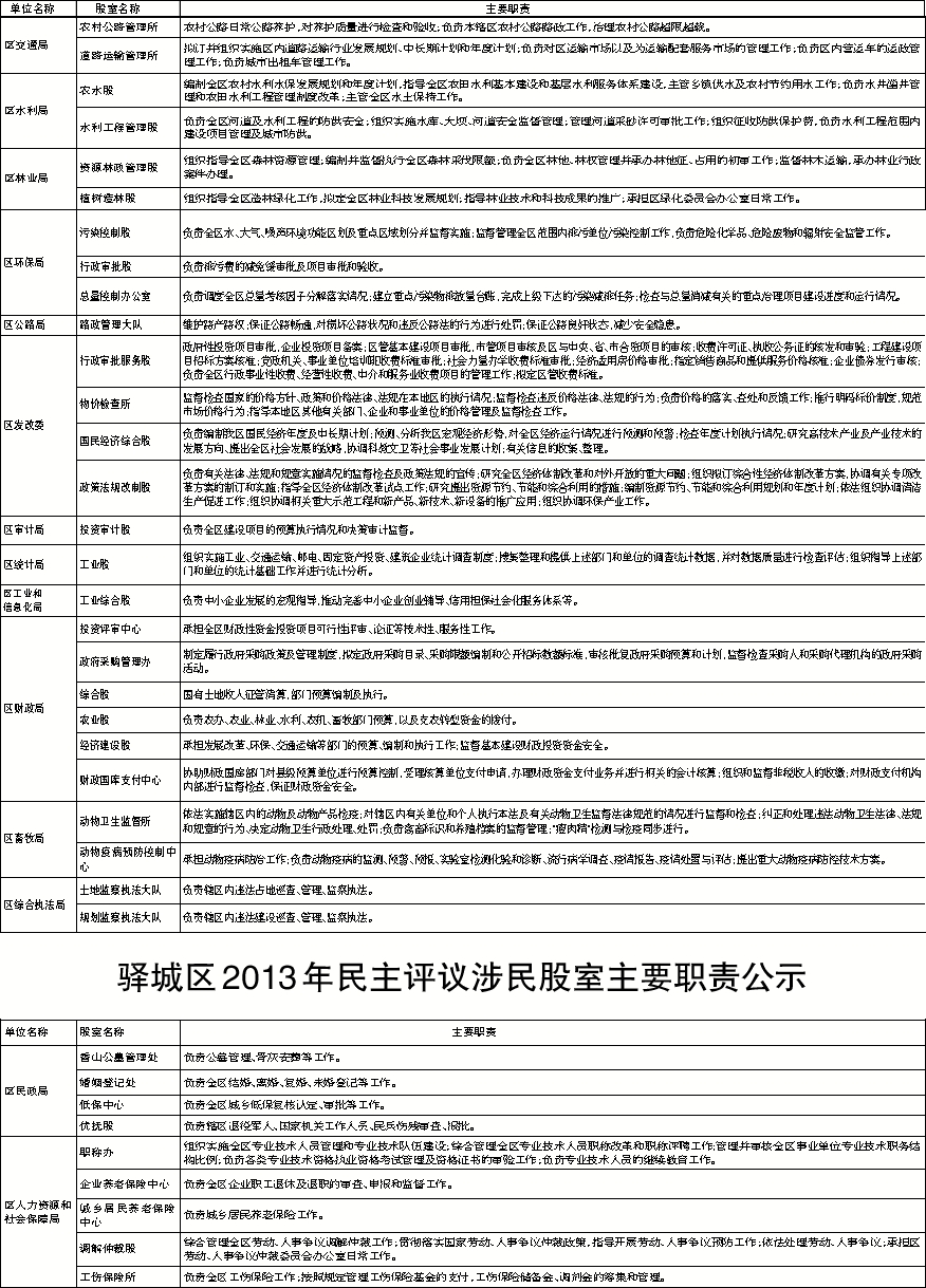 驛城區(qū)2013年民主評議涉企股室主要職責(zé)公示