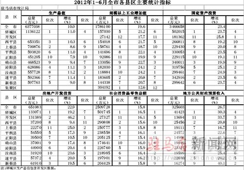 上半年全市各縣區(qū)主經(jīng)統(tǒng)計(jì)指標(biāo)