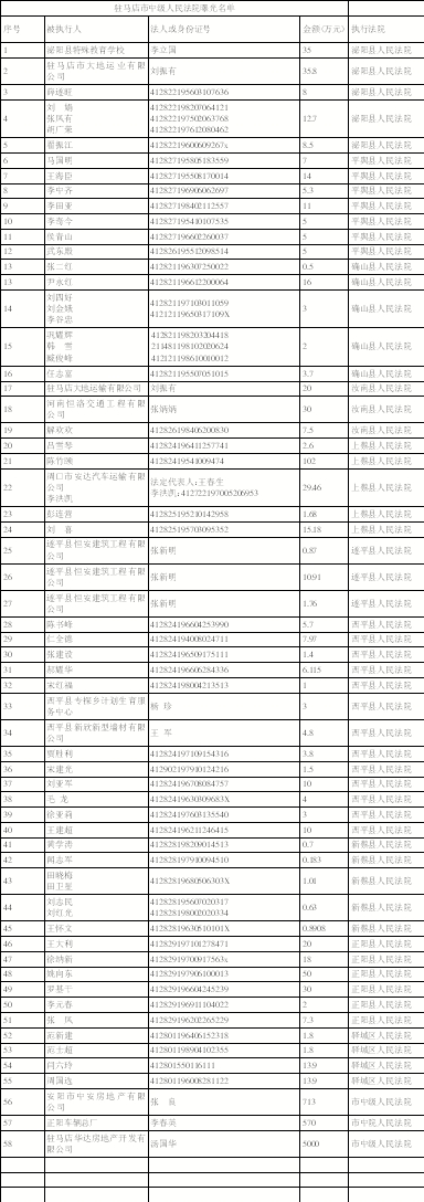 為進(jìn)一步打擊惡意逃債行為,切實(shí)維護(hù)執(zhí)行當(dāng)事人的合法權(quán)益,樹立司法權(quán)威,經(jīng)研究,決定對以下拒不執(zhí)行生效裁判文書確定義務(wù)的被執(zhí)行人予以曝光。希望被執(zhí)行人打消僥幸心理,盡快履行義務(wù)。對有能力履行而拒不執(zhí)行的被執(zhí)行人,人民法院將依法予以罰款、拘留;情節(jié)嚴(yán)重、構(gòu)成犯罪的,依法追究刑事責(zé)任。
