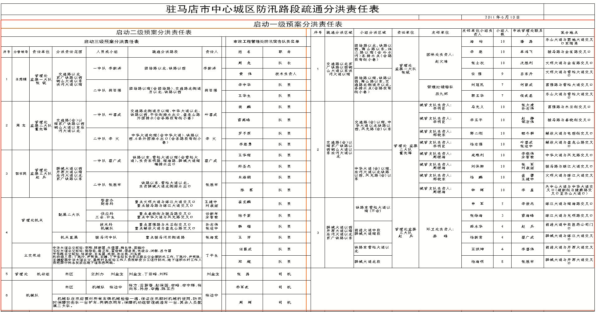 駐馬店市中心城區(qū)防汛路段疏通分洪責(zé)任表