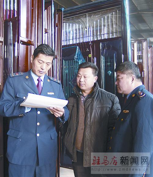 近日,西平縣工商局對轄區(qū)企業(yè)進(jìn)行上門回訪,幫助企業(yè)解難事、辦實(shí)事。圖為該局工商干部深入縣產(chǎn)業(yè)集聚區(qū)河南衛(wèi)平門業(yè)有限公司了解注冊商標(biāo)使用情況,增強(qiáng)企業(yè)商標(biāo)保護(hù)意識。通訊員 王向前 于華偉 攝影報(bào)道