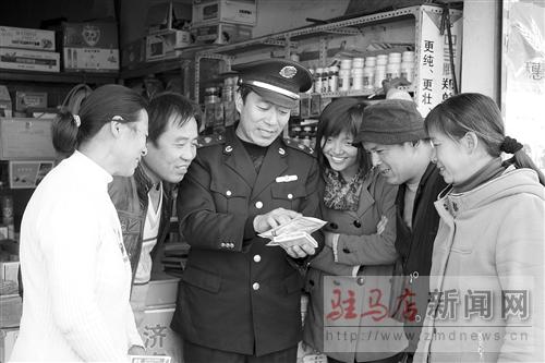 近日,新蔡縣工商局對全縣除草劑等農藥進行了檢查,確保廣大農民用上放心農藥。圖為澗頭工商所工作人員為群眾講解如何購買和使用農藥。記者 楊曉暉 通訊員 張 銳 攝影報道
