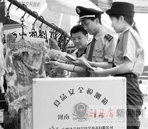 為確保夏季肉食品市場消費安全,讓消費者吃上放心肉,近日,西平縣工商局執(zhí)法人員加大了肉食品市場的監(jiān)管力度。 記者 張 勇 通訊員 王向前 攝影報道