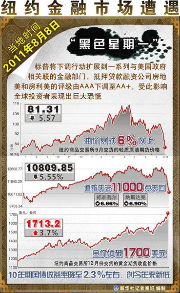 不容忽視的重大風(fēng)險--全球看美債 圖表:標(biāo)準(zhǔn)普爾下調(diào)美國主權(quán)信用評級 新華社記者 林漢志 編輯 新華網(wǎng)北京8月9日電(執(zhí)筆記者:劉云非,參與記者:蔣旭峰、馮武勇、石莉、趙毅、劉愷、劉彤、李明、應(yīng)強(qiáng)、宋晨、王雅楠、趙潔民、喻虹霞,參與報道員:權(quán)香蘭) 美國當(dāng)?shù)貢r間8月5日晚,國際評級機(jī)構(gòu)標(biāo)準(zhǔn)普爾公司宣布將美國AAA級長期主權(quán)信用評級下調(diào)一級至AA+。美國歷史上第一次喪失3A主權(quán)信用評級立即引發(fā)國際社會關(guān)切。猶如捅破一層“窗戶紙”,美國國債“無風(fēng)險”神話隨著評級下調(diào)而破滅。投資者對美國經(jīng)濟(jì)前景不確定性的擔(dān)憂加劇,恐慌情緒蔓延,全球股市跌聲一片。 其實,天量債務(wù)早已成為美國經(jīng)濟(jì)不能承受之重,財政的不可持續(xù)性預(yù)示著美國難逃信用評級遭降之運(yùn)。眼下,雖然AA+評級尚不能在美國債券市場掀起巨大波瀾,但美債評級遭下調(diào)確給美國經(jīng)濟(jì)帶來不小負(fù)面影響,同時其溢出效應(yīng)也成為全球經(jīng)濟(jì)復(fù)蘇的一大風(fēng)險因素。 自釀苦酒 美國國家經(jīng)濟(jì)委員會前主任勞倫斯·薩默斯近日在《華盛頓郵報》上撰文指出,美國提高公共債務(wù)上限消除了經(jīng)濟(jì)發(fā)展短期內(nèi)的不確定性。不過,美國當(dāng)前面臨的最迫切挑戰(zhàn)是創(chuàng)造就業(yè)等提振經(jīng)濟(jì)議題,而非僅僅是削減政府預(yù)算赤字。 他認(rèn)為,如果按照當(dāng)前經(jīng)濟(jì)增速和現(xiàn)行經(jīng)濟(jì)政策,美國失業(yè)率很難在2012年年底降至8.5%以下。今年上半年美國經(jīng)濟(jì)增速僅為1%左右,幾乎陷于停滯狀態(tài),而且美國經(jīng)濟(jì)還面臨歐洲主權(quán)債務(wù)危機(jī)沖擊。如果美國政府不采取任何提振需求和刺激增長的新舉措,美國經(jīng)濟(jì)有三分之一的可能性會滑向二次衰退。 美國經(jīng)濟(jì)政策研究所經(jīng)濟(jì)學(xué)家安德魯·菲爾德豪斯表示,兩黨就提高公共債務(wù)上限而達(dá)成的妥協(xié)方案是對美國短期就業(yè)和中長期經(jīng)濟(jì)增長不利的方案。這一方案將非國防開支所占國內(nèi)生產(chǎn)總值的比重壓縮到了50多年來最低位,使美國未來十年在教育、基礎(chǔ)設(shè)施和醫(yī)療等方面的開支大幅削減。 法國巴黎政治學(xué)院教授穆尼斯·哈桑說,美國評級被下調(diào)意味著美國融資成本將上升,投資和消費(fèi)將下降。美國已實施量化寬松政策向市場注入大量資金并保持低利率,因此美國貨幣和財政政策可操作空間變小。此外,美國公共支出控制不力而稅收壓力增加,在這種情況下整頓公共財政難度很大。哈桑說,美國經(jīng)濟(jì)有可能陷入日本在上個世紀(jì)90年代面臨的困局:基準(zhǔn)利率為零但經(jīng)濟(jì)增長乏力、物價下跌。 加拿大《環(huán)球郵報》8日頭版刊登的一篇文章稱,對于降級的主要憂慮是,它將最終導(dǎo)致美國拆借利率提高,推高政府利息支出。更高利率還會對美國經(jīng)濟(jì)產(chǎn)生負(fù)面影響,進(jìn)一步損害已經(jīng)蕭條的住房市場并抑制企業(yè)投資。 日本《朝日新聞》認(rèn)為,美國評級遭下調(diào)揭開了美元走向沒落的序幕。歐美現(xiàn)在面臨的公共債務(wù)問題是發(fā)達(dá)國家經(jīng)濟(jì)走入死胡同的一種表現(xiàn)。歐美國家的當(dāng)務(wù)之急是采取切實措施開源節(jié)支,重建財政,如果繼續(xù)依賴舉債,總有一天會國債暴跌,并招致嚴(yán)重的金融危機(jī)。 韓國經(jīng)濟(jì)學(xué)家認(rèn)為,美國提高債務(wù)上限并未消除美國主權(quán)債務(wù)違約風(fēng)險,美國債務(wù)將像滾雪球一樣越滾越大。如果美國政府支出按照妥協(xié)方案平均每年減少7%至8%,一直依靠政府支出艱難維持的美國經(jīng)濟(jì)增長勢頭就會進(jìn)一步下跌,從而引發(fā)稅收減少和財政狀況進(jìn)一步惡化的惡性循環(huán)。 韓國證券界人士表示,即使美國經(jīng)濟(jì)不會“二次探底”,美國經(jīng)濟(jì)近期也很難有起色。同時,隨著債務(wù)上限調(diào)高,美聯(lián)儲可能很快推出第三輪量化寬松政策,為經(jīng)濟(jì)注入流動性。長期來看,美元貶值趨勢難改。 斯洛文尼亞盧布爾雅那大學(xué)經(jīng)濟(jì)學(xué)院教授貝爾納德·布爾什契奇認(rèn)為,早在幾年前就應(yīng)該降低美國AAA主權(quán)信用評級。他說,奧巴馬政府的債務(wù)危機(jī)十分嚴(yán)重,龐大的債務(wù)負(fù)擔(dān)使美國成了病人。 圖表:紐約金融市場遭遇“黑色星期一” 新華社記者 秦迎 編制 風(fēng)險外溢 法國巴黎政治學(xué)院教授穆尼斯·哈桑表示,美國評級被下調(diào)對全球經(jīng)濟(jì)具有重要影響,會引起投資者擔(dān)憂,并對其他評級還保持在3A的國家產(chǎn)生巨大壓力。在歐洲主權(quán)債務(wù)危機(jī)外溢風(fēng)險加劇之時,這一舉動將加劇投資者對危機(jī)蔓延的擔(dān)憂,特別是在金融市場經(jīng)歷“黑色一周”之后。此外,美國評級被下調(diào)將對銀行產(chǎn)生直接影響,銀行將不得不考慮美國債券風(fēng)險。 加拿大財政部長詹姆斯·弗萊厄蒂說:“加拿大不是一座孤島。我們是一個貿(mào)易國家,產(chǎn)出的三分之一源自出