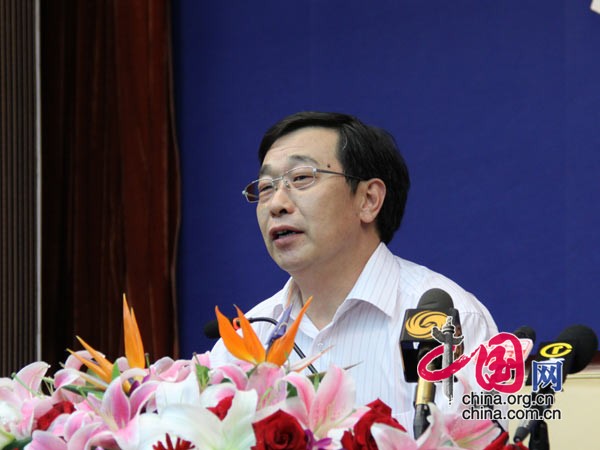 圖為人力資源和社會保障部發(fā)言人尹成基介紹情況。 中國網(wǎng) 張琳