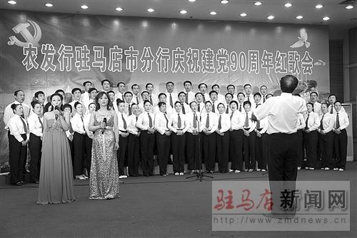 為紀(jì)念黨的90華誕,農(nóng)發(fā)行駐馬店市分行組織開展了系列慶?;顒?dòng),全面回顧黨的光輝歷程,引導(dǎo)廣大員工了解、熱愛(ài)、擁護(hù)黨,繼承和發(fā)揚(yáng)黨的光榮傳統(tǒng)。圖為該行舉辦的“紅色旋律,唱響中國(guó)”主題紅歌會(huì)現(xiàn)場(chǎng)。通訊員 張延穎 李國(guó)慶 攝影報(bào)道
