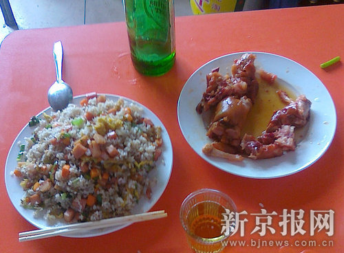 快餐店的玻璃展示柜里,放著六七只豬蹄。女店主稱15元一只。記者點(diǎn)了一只。