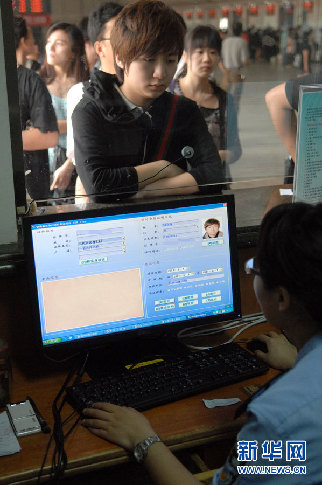 6月1日,杭州火車站鐵路警察在增設(shè)的窗口為旅客辦理臨時(shí)身份證明。當(dāng)日起,中國(guó)鐵路動(dòng)車組列車實(shí)行實(shí)名制管理。乘坐動(dòng)車組列車(包括“C”“D”“G”字頭車次的列車)的旅客須憑本人有效身份證件購(gòu)買車票并進(jìn)站、乘車。新華社記者黃宗治攝