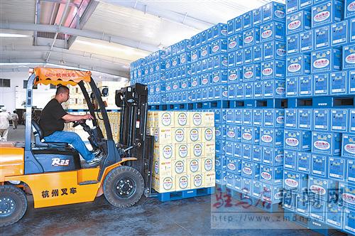 2010年8月,燕京啤酒集團全資收購遂平月山啤酒有限公司,成立燕京啤酒(駐馬店)有限公司,并投資8000萬元對原遂平月山啤酒有限公司的生產(chǎn)設(shè)備、工藝、配方等進行全方位技術(shù)改造,形成年產(chǎn)10萬噸啤酒的生產(chǎn)能力.自燕京啤酒(駐馬店)有限公司成立以來,該集團已上繳稅款500余萬元,為地方經(jīng)濟發(fā)展作出了貢獻。圖為該公司成品車間一角。記者 蘇建威 攝
