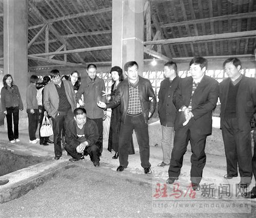 圖為棠梨花香酒業(yè)公司負責人陪同客商參觀釀酒基地。 路 曉 攝