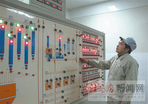 駐馬店市王守義十三香調(diào)味品集團有限公司近年來投入上千萬元資金對生產(chǎn)設(shè)備進行技術(shù)改新,憑借產(chǎn)品創(chuàng)新和技術(shù)創(chuàng)新,穩(wěn)居我國調(diào)味品行業(yè)領(lǐng)先地位。圖為該公司技術(shù)人員在技術(shù)先進的原材料生產(chǎn)車間生產(chǎn)總控制平臺控制生產(chǎn)。記者 張 勇 攝