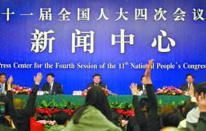 昨天,十一屆全國人大四次會議在兩會新聞中心舉行記者會。衛(wèi)生部部長陳竺,財(cái)政部副部長王軍,人力資源和社會保障部副部長胡曉義,發(fā)改委副主任、國務(wù)院醫(yī)改辦公室主任孫志剛就深化醫(yī)藥衛(wèi)生體制改革的相關(guān)問題回答中外記者提問?! ”緢?bào)記者 戴冰攝