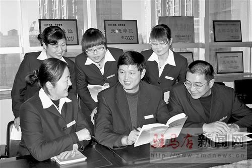 被總行授予“文明建設(shè)先進(jìn)單位”的農(nóng)行駐馬店分行營(yíng)業(yè)室積極開展廉政教育活動(dòng),利用廉政教育講座、知識(shí)競(jìng)賽、座談會(huì)等形式組織員工學(xué)習(xí)。圖為