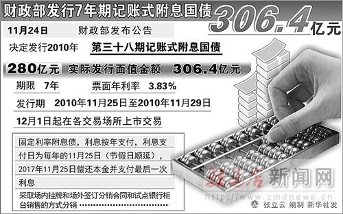 財(cái)政部發(fā)行7年期記賬式附息國(guó)債306.4億元