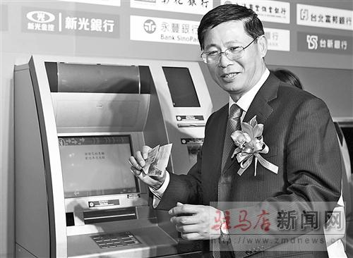 摘要: 中國銀聯(lián)總裁許羅德在開通儀式上從ATM機上取出現(xiàn)金。近日,中國銀聯(lián)和臺灣財金資訊股份有限公司(財金資訊)在臺北舉行儀式,共同宣布首次開通臺灣ATM機的銀聯(lián)卡受理業(yè)務(wù),銀聯(lián)卡實現(xiàn)在臺ATM機的取現(xiàn)、查詢余