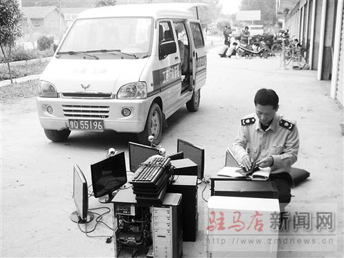 近日,平輿縣工商局東皇工商所在當(dāng)?shù)毓膊块T的配合下,出動執(zhí)法車輛10余臺次、執(zhí)法人員30余人,通過拉網(wǎng)式排查,端掉黑網(wǎng)吧3個,查扣電腦10余臺。記者 鄭付生 通訊員 鄭向陽 攝影報道