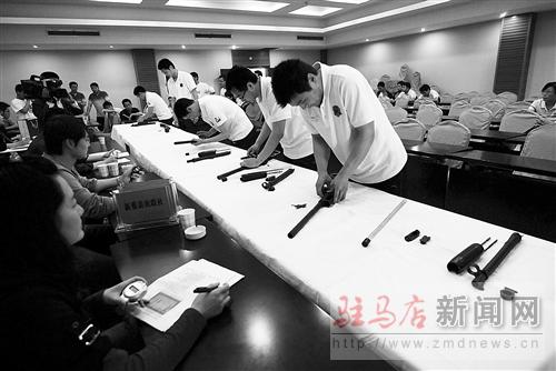 各縣區(qū)參賽隊(duì)員在進(jìn)行防暴槍支分解結(jié)合測(cè)試比賽。 記者 吳 波 攝