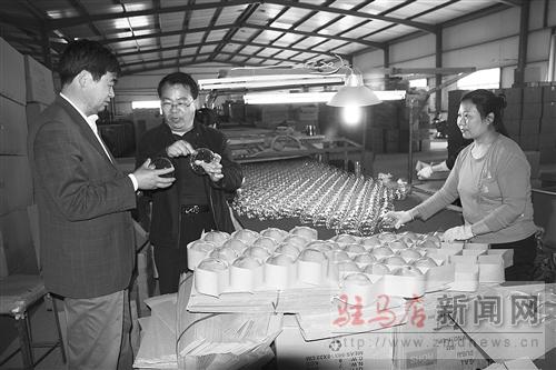 驛城區(qū)胡廟鄉(xiāng)招商引資企業(yè)駐馬店市遠(yuǎn)洋照明責(zé)任有限公司總投資近億元,生產(chǎn)的日光照明節(jié)能燈很受市場(chǎng)歡迎,遠(yuǎn)銷8個(gè)省、市和地區(qū),產(chǎn)品供不應(yīng)求。圖為該鄉(xiāng)工作人員在該企業(yè)了解生產(chǎn)銷售情況。記者 鄭付生 通訊員 米 山 攝影報(bào)道