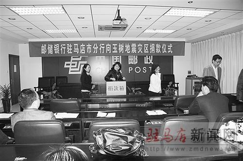 一方有難,八方支援。郵儲(chǔ)銀行駐馬店市分行積極組織員工為玉樹地震災(zāi)區(qū)人民捐款獻(xiàn)愛心。