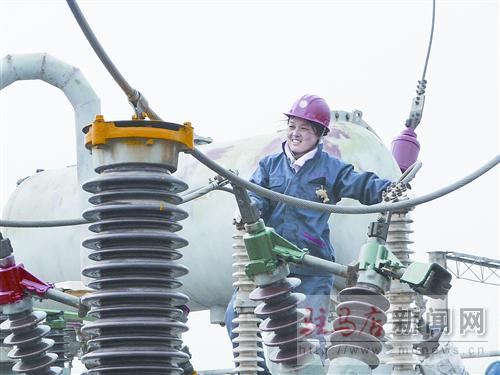 泌陽(yáng)縣電業(yè)公司修試公司是一個(gè)以女工為主的一線單位,她們工作嚴(yán)謹(jǐn)、淡泊名利、無(wú)私奉獻(xiàn)的時(shí)代精神感染著該公司每一位電業(yè)人。圖為修試班長(zhǎng)禹迎春近日在110KV變壓器上工作。通訊員 呂紹戰(zhàn) 攝