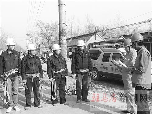 上蔡縣電業(yè)局為確保春季施工安全,在施工前,工作負(fù)責(zé)人及專責(zé)監(jiān)護(hù)人對工作班成員進(jìn)行危險點告知,確保工作班每位成員做到工作目標(biāo)明確,安全責(zé)任到位。圖為日前,安全監(jiān)察員和專責(zé)監(jiān)護(hù)人對該局施工人員進(jìn)行安全告知。通訊員 馮新豪 攝
