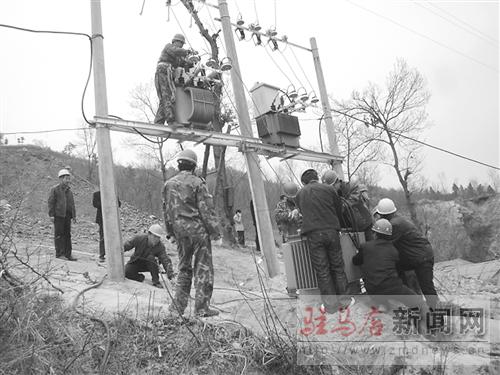 泌陽縣電業(yè)局在春季檢修與搶險(xiǎn)保電過程中,投入搶修及其他車輛16輛,投入變壓器、線纜等合計(jì)20余萬元。圖為該局職工在為用電大戶馬谷田礦區(qū)更換新增變壓器。通訊員 呂紹戰(zhàn) 王 超 攝影報(bào)道