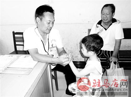王磊在為患兒檢查身體。