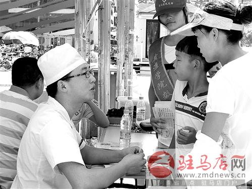7月3日,黃淮學(xué)院數(shù)學(xué)科學(xué)系暑期大學(xué)生社會實踐驛城區(qū)服務(wù)隊聯(lián)合市口腔醫(yī)院在樂山大道與解放大道交叉口開展了以“愛牙知識進社區(qū)”為主題的公益宣傳活動。