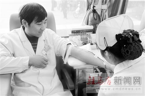 為確保春節(jié)期間醫(yī)療機構(gòu)臨床用血需求,日前,駐馬店市第二人民醫(yī)院組織醫(yī)務(wù)人員參與無償獻血活動。該院有79人走上獻血車奉獻愛心。圖為獻血現(xiàn)場。通訊員 曹 楠 攝