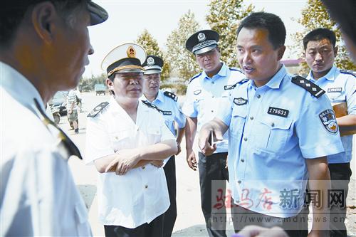 執(zhí)法人員和民警在現(xiàn)場對阻撓執(zhí)法行為研究具體執(zhí)法方案。記者 黃育南 攝