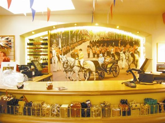 與白金漢宮一墻之隔的白金漢宮大街女王紀(jì)念品商店,推開玻璃門,印有英國王室和女王頭像的茶杯、托盤、鐘表、鉛筆、紀(jì)念章等,琳瑯滿目,中午在白金漢宮外看完閱兵儀式后,再到這里血拼一番,自己留作紀(jì)念也好,當(dāng)手信送朋友也好,觸摸這些精致小物件,都仿佛能呼吸到老英國的氣息。