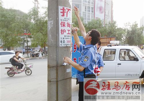 為積極配合我市省級(jí)文明城市創(chuàng)建工作,近日,開(kāi)發(fā)區(qū)綜合執(zhí)法局組織執(zhí)法人員對(duì)轄區(qū)內(nèi)各類(lèi)小廣告進(jìn)行集中清理。記者 馬國(guó)省 通訊員 高小麗 攝影報(bào)道