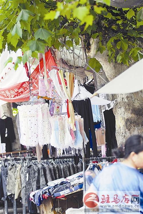 在風(fēng)光路的樹(shù)上掛著等待銷售的衣服。