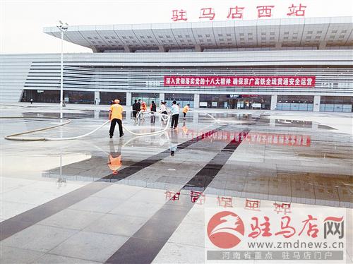 為迎接中國“農(nóng)洽會(huì)”在我市召開,近日,駐馬店市高鐵西站廣場(chǎng)管理處認(rèn)真做好迎會(huì)各項(xiàng)準(zhǔn)備工作,全面清理廣場(chǎng)衛(wèi)生死角,提高清掃保潔質(zhì)量。目前,站前廣場(chǎng)環(huán)境整潔、道路通暢、秩序井然,為提升城市品位、樹立城市窗口形象營(yíng)造了良好的氛圍。圖為該管理處正在組織人員清掃路面。記者 張 靜 通訊員 鄭 娟 攝影報(bào)道
