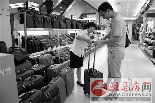 摘要: 近日,在市區(qū)樂山商場,一位顧客在購買箱包。顧客介紹,他是為家中剛考上高校的學(xué)生購買的。連日來,隨著大學(xué)新生報(bào)到臨近,家長紛紛為子女購買出行必備的箱包、旅行包。市區(qū)有的商家還憑大學(xué)錄取通知