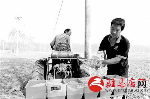 日前,在汝南縣小麥萬(wàn)畝高產(chǎn)創(chuàng)建示范田里,該縣金鋪鎮(zhèn)潘灣村村民李偉等人正在忙著播種。他們?cè)诳h農(nóng)業(yè)技術(shù)人員的指導(dǎo)下,抓著當(dāng)前有利時(shí)機(jī)適時(shí)播種。 記者 劉仁忠 通訊員 李勤玲 攝影報(bào)道
