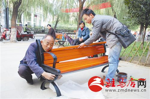 連日來,開發(fā)區(qū)建設(shè)交通局對(duì)轄區(qū)內(nèi)所有游園進(jìn)行了升級(jí)改造,對(duì)游園內(nèi)現(xiàn)有水、電、路和各項(xiàng)基礎(chǔ)設(shè)施進(jìn)行了全部維修和更新,確保游園干凈整潔。圖為該局工作人員正在市區(qū)文明大道北段一游園內(nèi)安裝新木凳。 記者 馬國省 攝