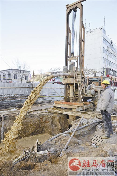 文明大道與春曉街交叉口過街天橋施工處,工人在鉆探打孔。