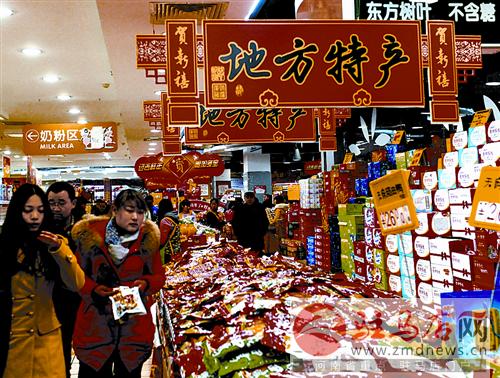 在市雪松大道愛家百貨,琳瑯滿目的商品讓人目不暇接。商場專門開設(shè)了土特產(chǎn)區(qū)域,將全市的各類土特產(chǎn)集中到一起,供市民挑選。在糖果區(qū),市民陳先生帶著妻子、兒子購物。雖然孩子還小,但陳先生不時和孩子商量買什么,全家人有說有笑。