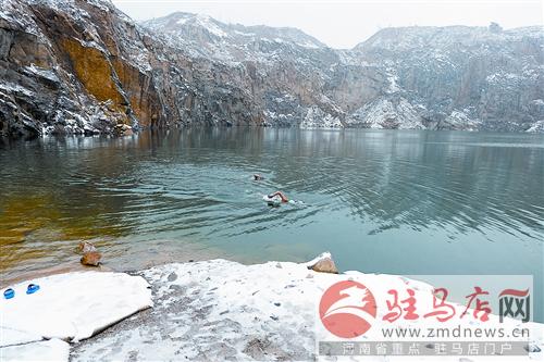 昨日,我市冬泳愛好者頂風(fēng)冒雪,在驛城區(qū)香山礦坑冬泳。梁爽/攝