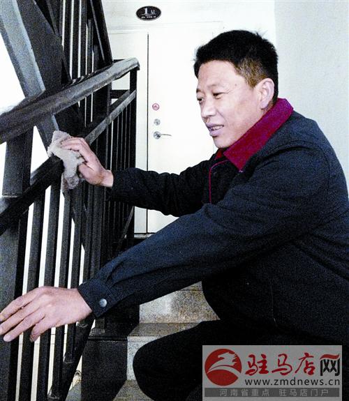 昨日,物業(yè)人員在擦樓梯扶手。春節(jié)來臨,為讓小區(qū)居民度過一個(gè)祥和、歡樂的春節(jié),昨日,市緯二路天中第一城小區(qū)物業(yè)值班人員積極打掃小區(qū)衛(wèi)生,讓居民在干凈的環(huán)境中度過春節(jié),為近600戶小區(qū)居民營(yíng)造良好的節(jié)日氣氛。